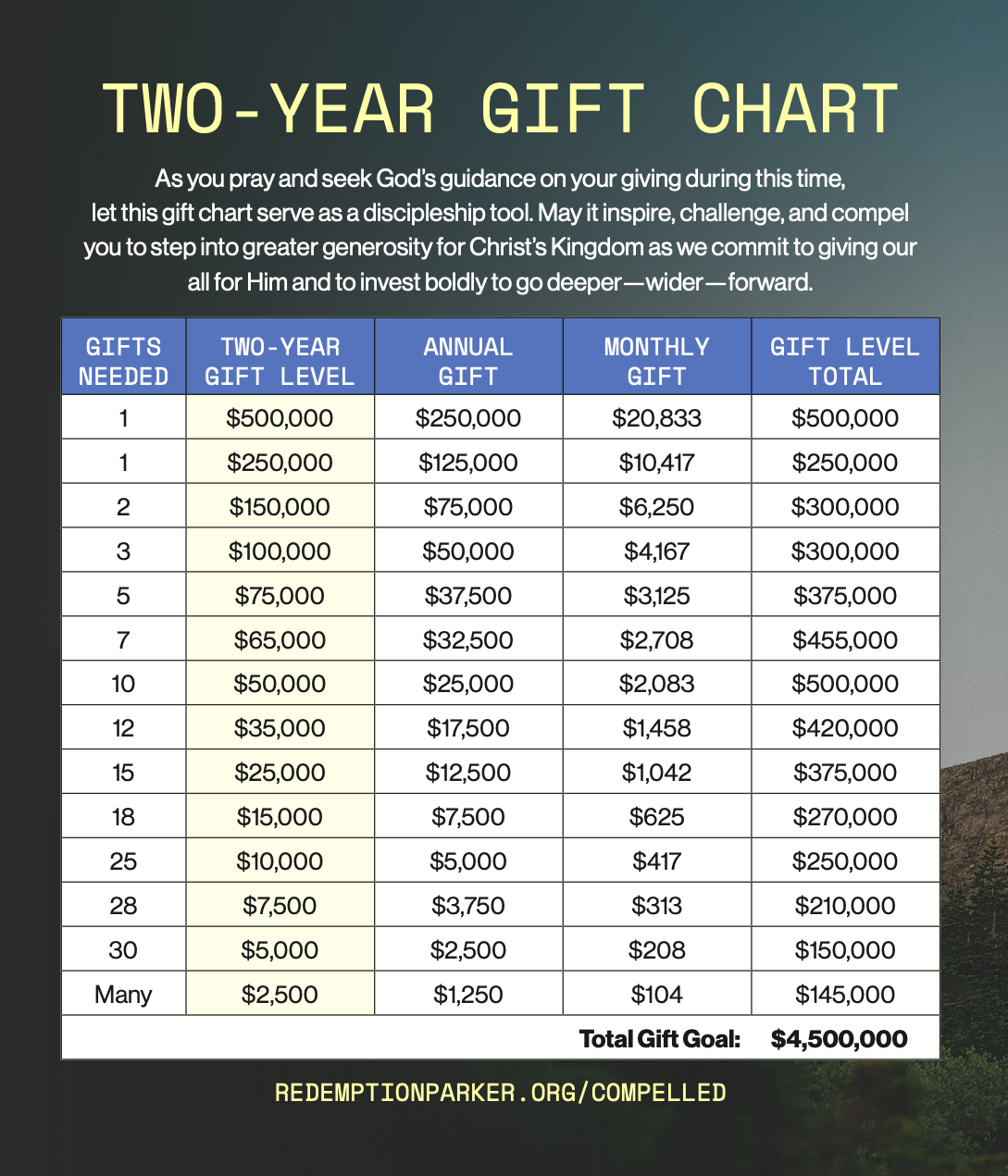 Compelled by the love of Christ, this two-year discipleship journey of generosity will mark a defining season in the life of Redemption Parker. During this time, we will live and love boldly—going deeper, reaching wider, and moving forward in faith together.